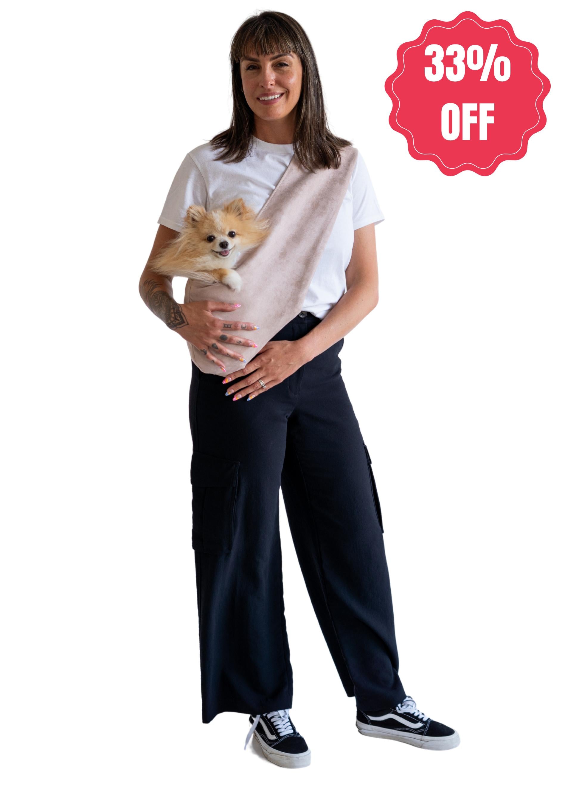 Snuggle up with our signature Fabulously Flawed - Vegan Ultra Suede SNUGGIT! This medium-weight fabric is buttery soft, durable, and able to hold your pup comfortably. Plus, each SNUGGIT comes with an attached harness hook for added safety. Flaws and all- it's just too cushy-cozy to resist!